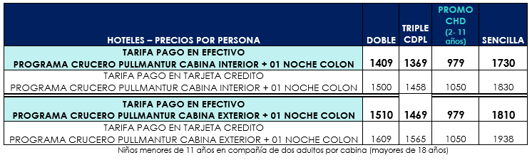 • Las Fechas indicada en los precios, es la fecha de inicio de crucero “Días Viernes”.
